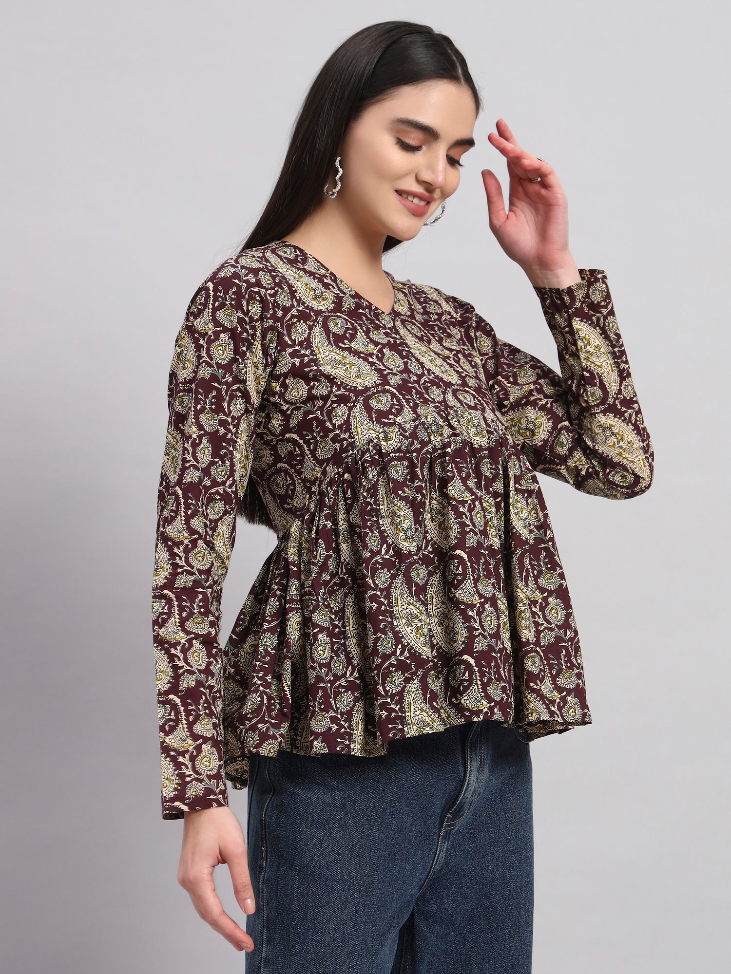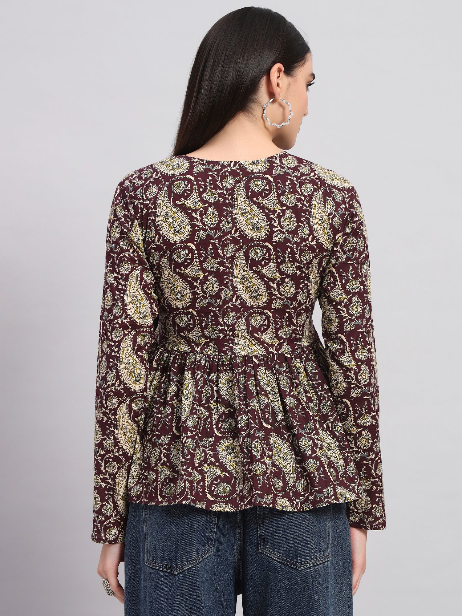 Turn up the charm with this boho-chic wine printed kurti. The flared silhouette and paisley print bring effortless vibes — comfy yet totally statement. Perfect for college days, brunch plans, or a casual day out. Pair it with jeans or palazzos and serve that boho babe energy.