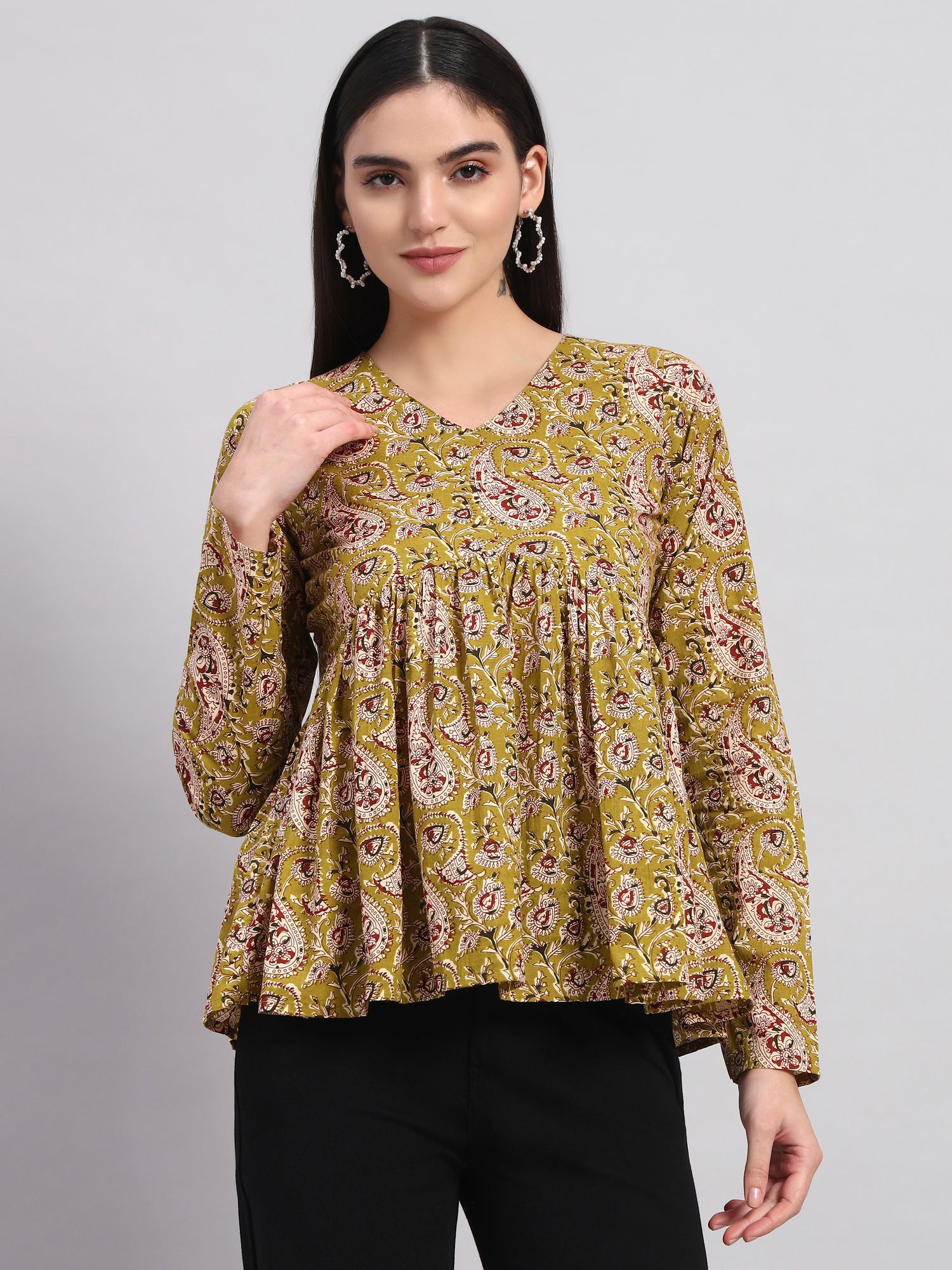 Turn up the charm with this boho-chic Mehndi Green printed kurti. The flared silhouette and floral print bring effortless vibes — comfy yet totally statement. Perfect for college days, brunch plans, or a casual day out. Pair it with jeans or palazzos and serve that boho babe energy.